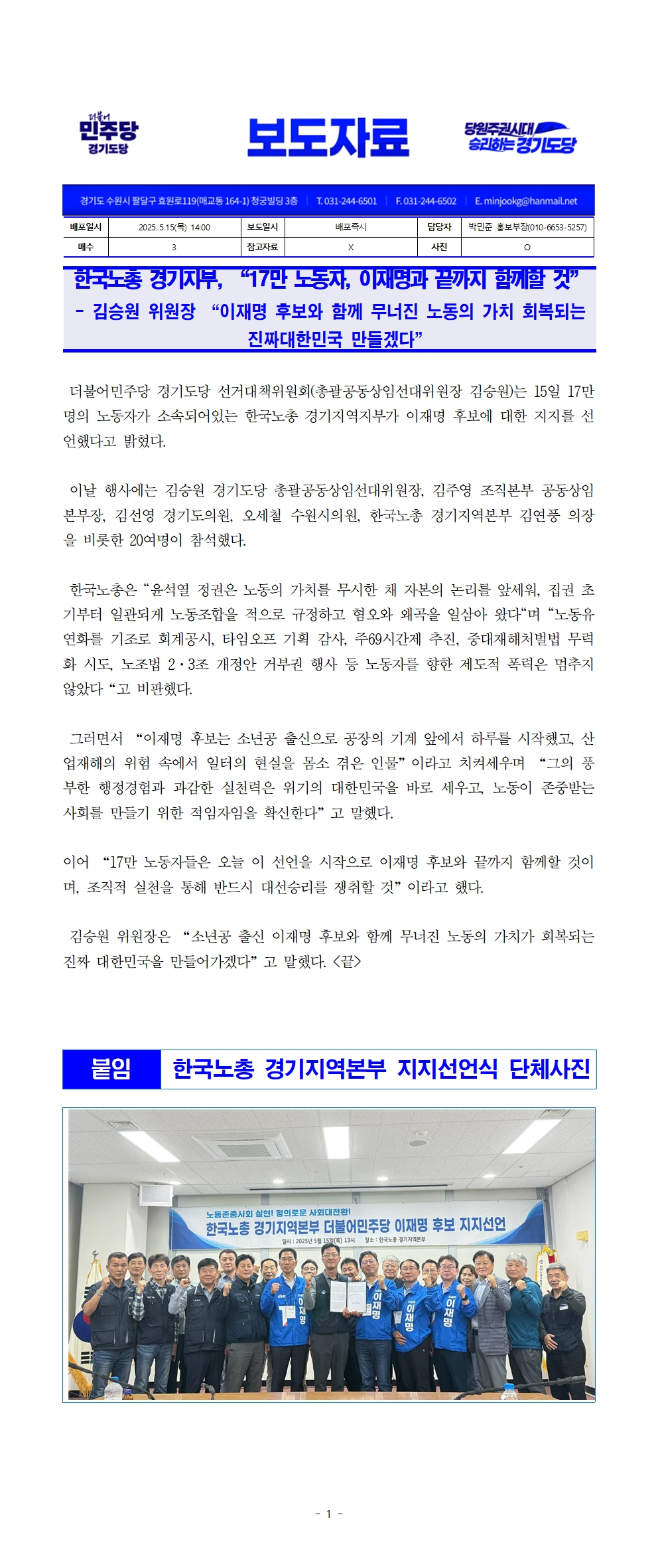 목, 2025/05/15- 00:00 에 admin 에 의해 제출됨 [0] 관련 개인/그룹 민주당 경기도당 정당 더불어민주당 지역 경기 카테고리 보도/논평 링크 https://www.minjookg.kr/sub01_news/press.php?board_page=1&board_mode=view&board_no=111520 Like 0 Dislike 0 1 view 댓글 달기 이름 제목 Comment 저장 Preview