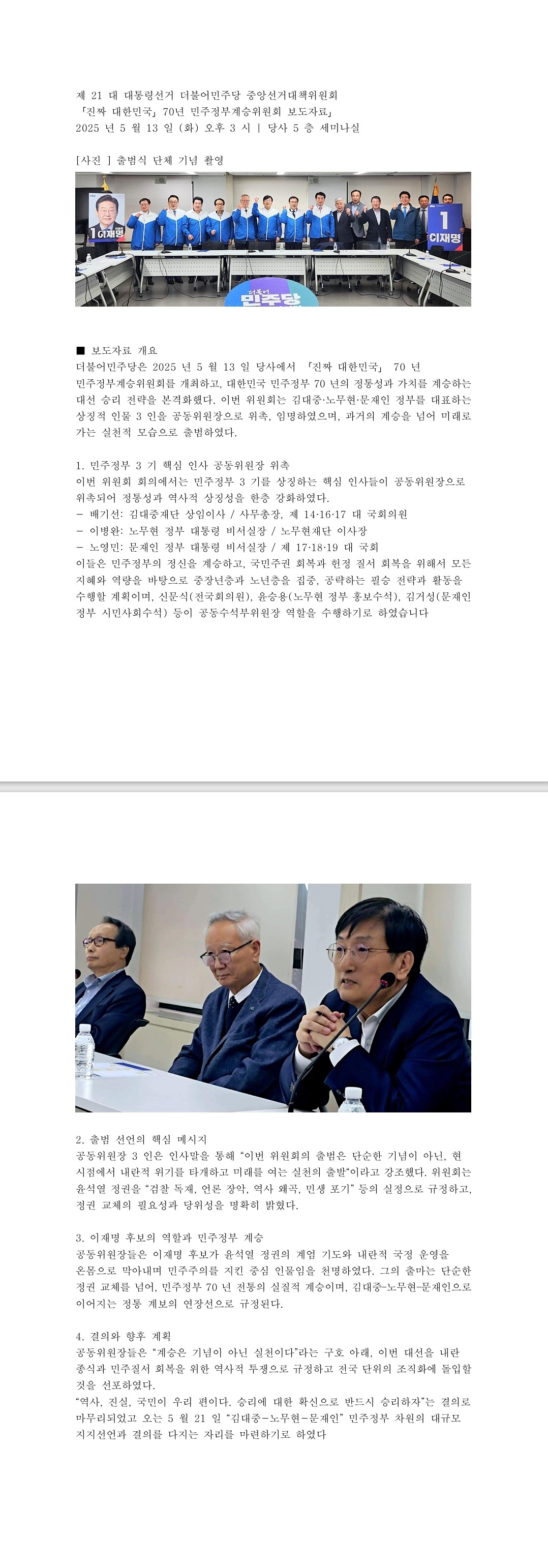 토, 2025/05/17- 00:00 에 admin 에 의해 제출됨 [0] 관련 개인/그룹 민주당 중앙당 정당 더불어민주당 지역 미특정 카테고리 보도자료 250513_민주정부계승위원회 출범_보도자료.pdf공유 공유하기 닫기페이스북트위터카카오톡URL 복사 링크 https://theminjoo.kr/main/sub/news/view.php?sno=0&brd=188&post=1211447&search= Like 0 Dislike 0 2 views 댓글 달기 이름 제목 Comment 저장 Preview