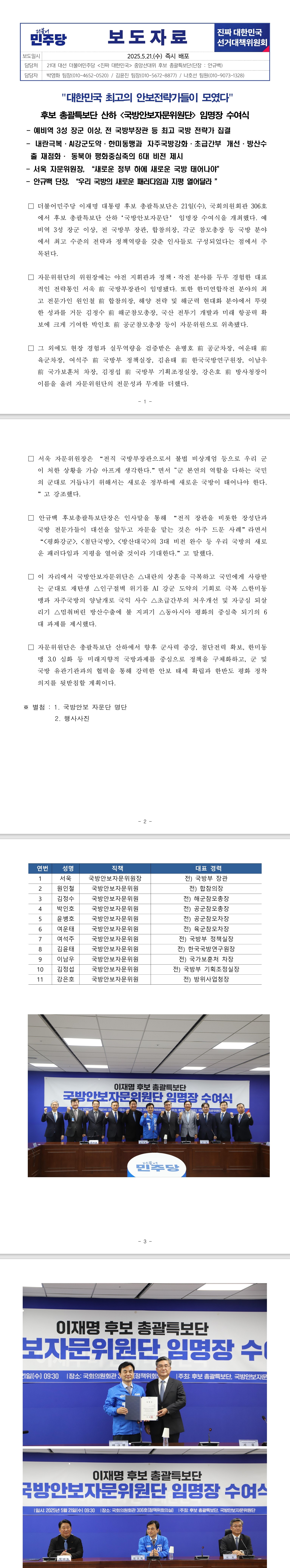 수, 2025/05/21- 00:00 에 admin 에 의해 제출됨 [0] 관련 개인/그룹 민주당 중앙당 정당 더불어민주당 지역 미특정 카테고리 보도자료 250521_총괄특보단_보도자료_후보_총괄특보단_국방안보자문위원단_임명장_수여식_개최.pdf공유 공유하기 닫기페이스북트위터카카오톡URL 복사 링크 https://theminjoo.kr/main/sub/news/view.php?sno=0&brd=188&post=1211618&search= Like 0 Dislike 0 댓글 달기 이름 제목 Comment 저장 Preview