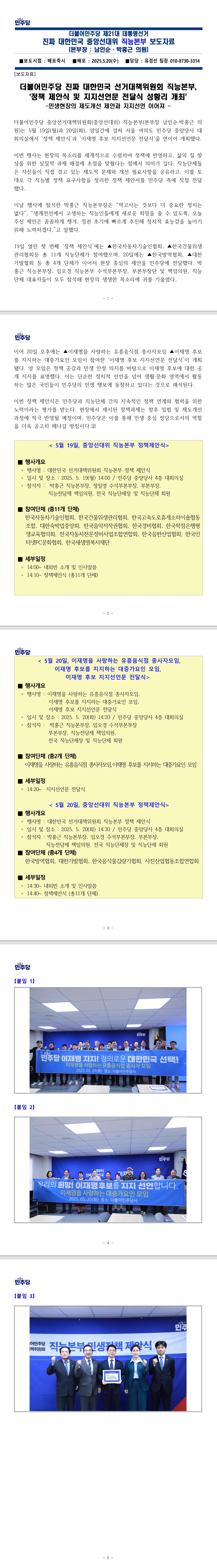 수, 2025/05/21- 00:00 에 admin 에 의해 제출됨 [0] 관련 개인/그룹 민주당 중앙당 정당 더불어민주당 지역 미특정 카테고리 보도자료 0521_5월19일20일_직능본부_보도자료_정책제안식_및_지지선언문_전달식_성황리개최v2.pdf공유 공유하기 닫기페이스북트위터카카오톡URL 복사 링크 https://theminjoo.kr/main/sub/news/view.php?sno=0&brd=188&post=1211604&search= Like 0 Dislike 0 댓글 달기 이름 제목 Comment 저장 Preview