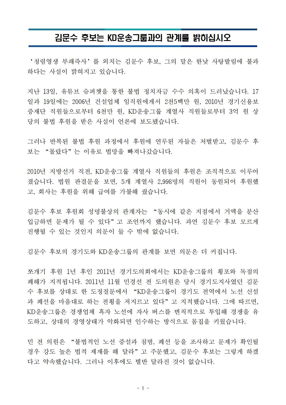 수, 2025/05/21- 00:00 에 admin 에 의해 제출됨 [0] 관련 개인/그룹 민주당 중앙당 정당 더불어민주당 지역 미특정 카테고리 보도자료 250520_김문수_후보는_KD운송그룹과의_관계를_밝히십시오.pdf공유 공유하기 닫기페이스북트위터카카오톡URL 복사 링크 https://theminjoo.kr/main/sub/news/view.php?sno=0&brd=188&post=1211615&search= Like 0 Dislike 0 댓글 달기 이름 제목 Comment 저장 Preview