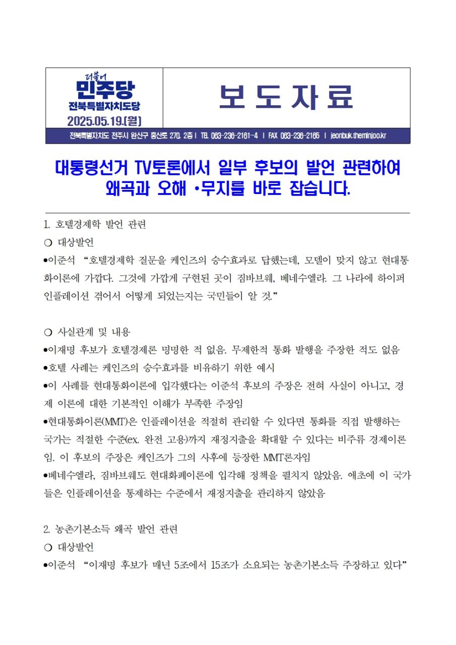 월, 2025/05/19- 00:00 에 admin 에 의해 제출됨 [0] 관련 개인/그룹 민주당 전북도당 정당 더불어민주당 지역 전북 카테고리 보도자료 20250519_보도자료_대통령_후보자_토론회_팩트체크.hwp 링크 https://jeonbuk.theminjoo.kr/party/sub/news/view.php?brd=249&post=1754&board_id=press Like 0 Dislike 0 댓글 달기 이름 제목 Comment 저장 Preview