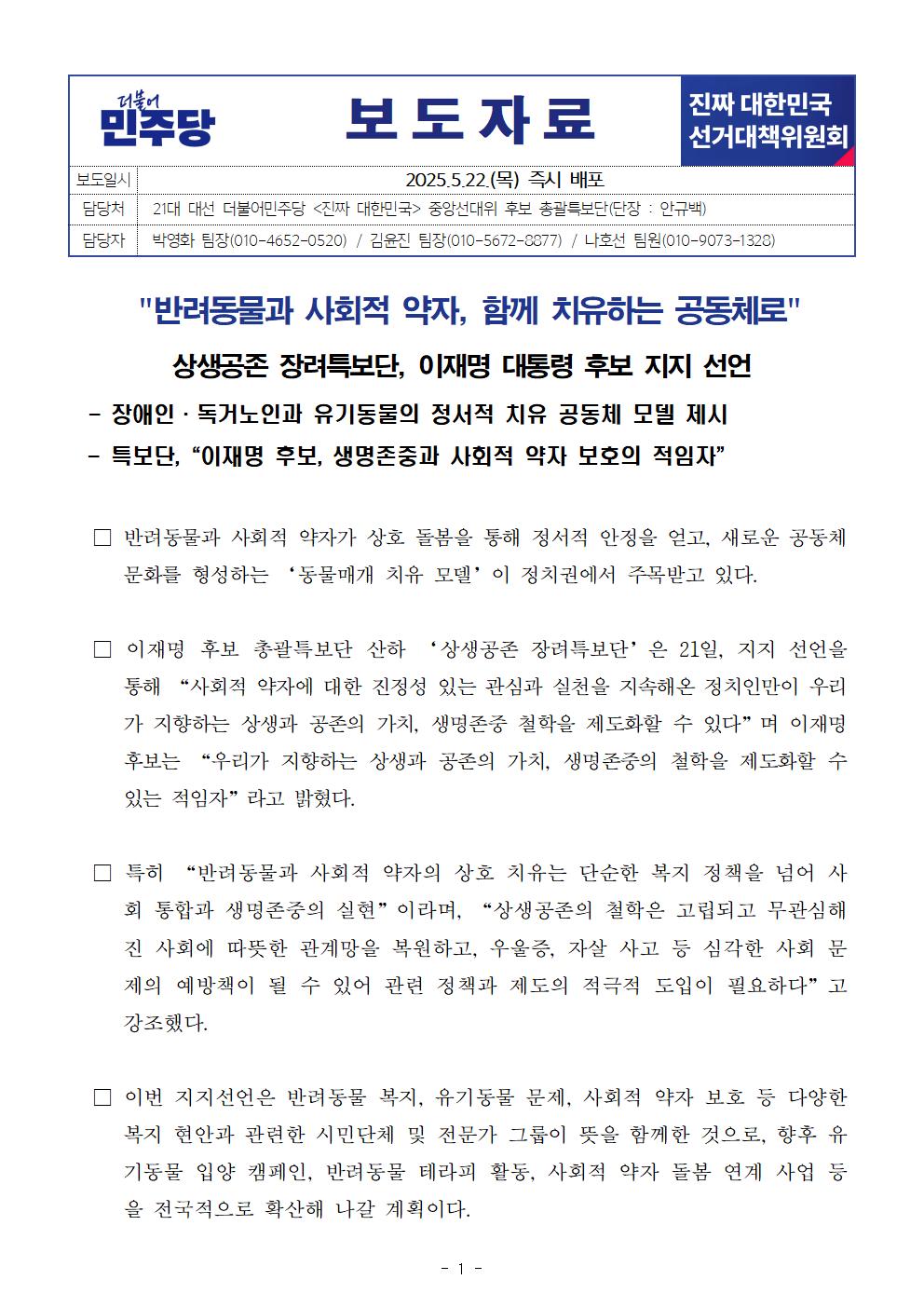 목, 2025/05/22- 00:00 에 admin 에 의해 제출됨 [0] 관련 개인/그룹 민주당 중앙당 정당 더불어민주당 지역 미특정 카테고리 보도자료 250522_후보총괄특보단_보도자료_상생공존_장려특보단_회원_지지_선언.pdf공유 공유하기 닫기페이스북트위터카카오톡URL 복사 링크 https://theminjoo.kr/main/sub/news/view.php?sno=0&brd=188&post=1211673&search= Like 0 Dislike 0 7 views 댓글 달기 이름 제목 Comment 저장 Preview
