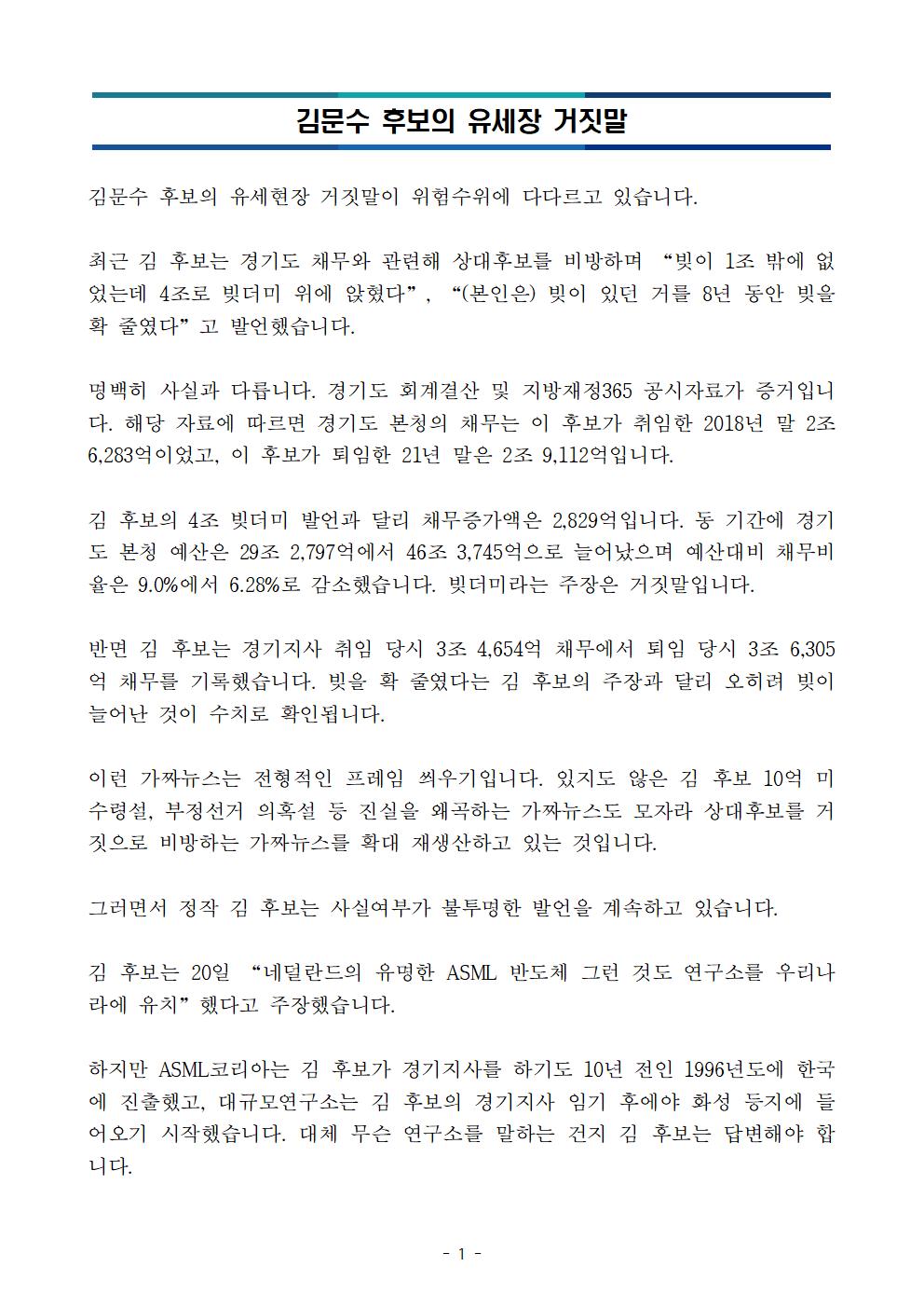 목, 2025/05/22- 00:00 에 admin 에 의해 제출됨 [0] 관련 개인/그룹 민주당 중앙당 정당 더불어민주당 지역 미특정 카테고리 보도자료 250522 김문수 후보의 유세장 거짓말.pdf공유 공유하기 닫기페이스북트위터카카오톡URL 복사 링크 https://theminjoo.kr/main/sub/news/view.php?sno=0&brd=188&post=1211676&search= Like 1 Dislike 0 1 view 댓글 달기 이름 제목 Comment 저장 Preview