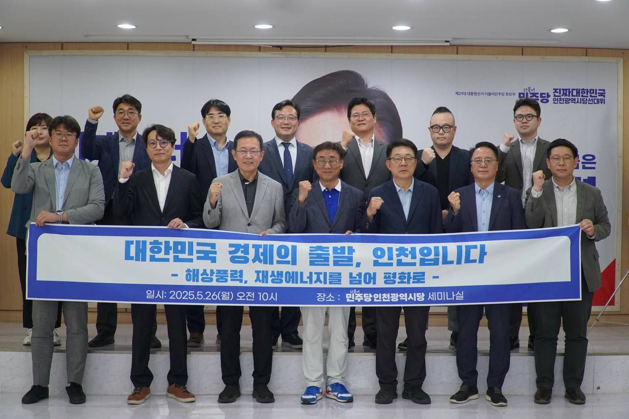 더불어민주당 인천광역시당 선거대책위원회는 26일 오전 시당 세미나실에서 ‘대한민국 경제의 출발, 인천입니다’ 연속 간담회 첫 번째 주제로 ‘해상풍력, 재생에너지를 넘어 평화로’를 진행했다.