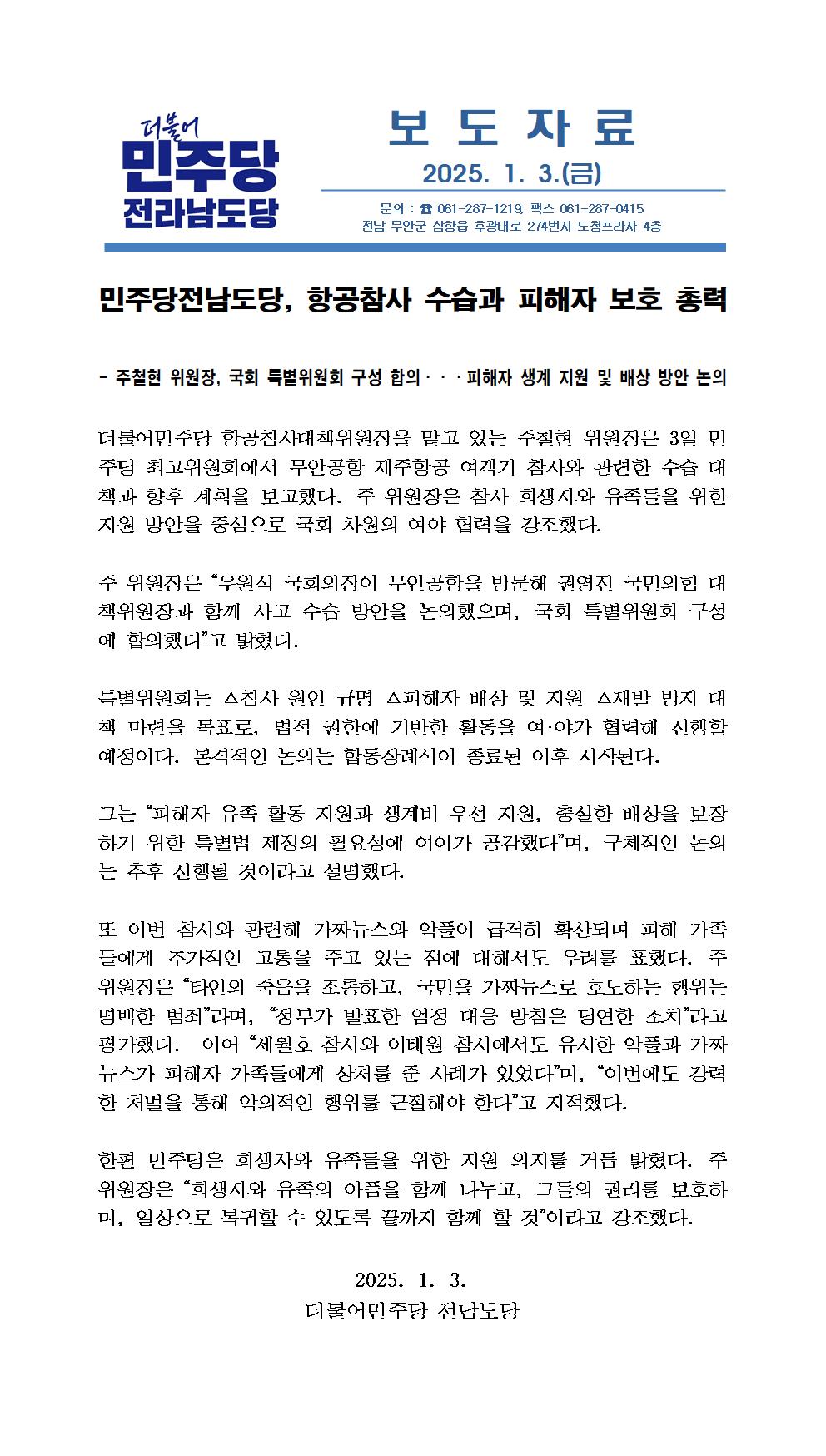 목, 2025/01/02- 00:00 에 admin 에 의해 제출됨 [0] 관련 개인/그룹 민주당 전남도당 정당 더불어민주당 지역 전남 카테고리 보도자료 링크 https://jnminjoo.kr/bbs/?b_id=news_report&site=basic&mn=1018&type=view&bs_idx=529 Like 0 Dislike 0 댓글 달기 이름 제목 Comment 저장 Preview