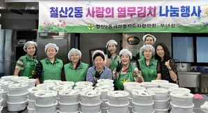 철산2동 새마을지도자협의회(회장 김현규)와 부녀회(회장 황숙자)는 지난 5일 관내 저소득층 이웃을 위해 직접 담근 열무물김치를 전달하는 나눔 행사를 진행했다고 밝혔다.이번 행사에서는 고령자와 신체가 불편한 세대, 저소득 한부모가족 등 총 80가구를 우선 선정해 따뜻한 나눔을 실천했다.행사에 참여한 회원 10여 명은 이른 더위에도 불구하고 전날부터 새마을회관 2층 채움부엌에서 재료를 준비하고 김치를 담갔다.황숙자 회장은 “돌봄이 필요한 이웃에게 정성껏 담근 열무김치를 전할 수 있어 기쁘다”며 “앞으로도 저소득층을 위한 봉사활동을 꾸준