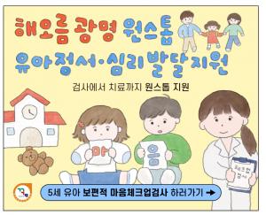 경기도광명교육지원청(교육장 이용현)은 유아 및 교육공동체의 건강한 정서 발달 지원을 위한 「2025 해오름 광명 원스톱 유아 정서 ․ 심리 발달 지원 사업」을 실행해 나간다.이번 「2025 해오름 광명 원스톱 유아 정서 ․ 심리 발달 지원 사업」은 관내 유치원에 재학 중인 5세(20219.1.1. ~ 2019.12.31.)와 4세 유아 일부 및 보호자를 대상으로 실시한다. 유치원으로 방문하여 놀이식으로 진행되는 유아 주도 CNT 검사와 부모 응답형 K-CBCL 검사 실시를 통해 개별 유아보고서 및 맞춤형 보호자 양육 코칭 등 정서