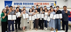 광명5동 주민자치회(회장 심현숙)는 지난 10일 을 개최했다고 밝혔다.이날 위촉식에는 하태화 자치행정국장, 주민자치회 위원, 관계 공무원 등 50여 명이 참석했으며, 신규위원 소개와 위촉장 전달, 인사말 등이 진행됐다.이번에 19명의 신규 위원이 추가로 위촉되면서 광명5동 주민자치회는 총 41명으로 구성됐다. 이들은 임기 동안 ▲마을 의제 발굴과 계획 수립 ▲주민총회 개최 ▲주민자치회 활성화 사업 등 다양한 활동으로 주민을 대표하고, 행복하고 살기 좋은 마을 만들기에 앞장설 예
