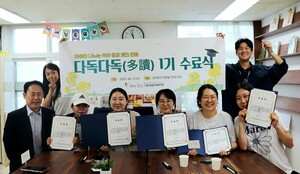 철산종합사회복지관(관장 김영선, 이하 ’철산복지관‘)은 지난 11일(수) 철산4동 도덕파크아파트 ’푸른솔 작은도서관‘에서 마음을 나누는 육아 공감 토크 클럽, 다독다독(多讀) 1기(이하 ’다독다독‘) 평가회를 진행했다고 밝혔다. 프로그램은 올해 4월부터 시작되어, 영유아 자녀를 둔 철산4동 엄마 10명을 대상으로 ▲양육 스트레스 완화를 위한 감정코칭 육아법 강의 ▲부모교육 도서를 활용한 지지·공감 독서모임 ▲아이와 함께하는 체험활동 ▲양육 에세이 포토북 제작 등 다양한 내용으로 운영되었다.이번 평가회에서는 참여자들의 이야