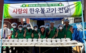 광명3동 새마을지도자협의회(회장 방용철)·부녀회(회장 최옥선)는 지난 12일 를 개최했다고 밝혔다.이날 새마을 회원 20여명은 이른 아침부터 광명3동 행정복지센터에 모여 정성스럽게 불고기를 준비했으며, 이를 관내 취약계층 50가구에 전달했다.최옥선 회장은 “이번 나눔 행사는 주민들의 정성과 후원으로 마련됐으며, 이웃들에게 따뜻한 음식을 전할 수 있어 매우 보람을 느낀다”며 “앞으로도 광명3동의 소외된 이웃들을 위해 꾸준히 봉사활동을 이어가겠다”고 말했다.엄인봉 동장은 “바쁜 일정에도 참여한 단체원과 지역