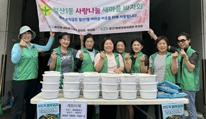 철산1동 새마을지도자협의회(회장 신현수)와 새마을부녀회(회장 박현자)는 지난 19일 철산1동 행정복지센터 앞 주차장에서 어려운 이웃을 돕기 위한 ‘사랑나눔 새마을 바자회’를 개최했다고 밝혔다.이날 바자회에서는 철산1동 새마을 부녀회원들이 정성껏 담근 열무김치를 판매했으며, 바자회에서 발생한 수익금은 철산1동 내 취약계층 지원에 사용할 예정이다.박현자 부녀회장은 “많은 주민들께서 뜻깊은 나눔 행사에 함께해서 감사하다”며 “모아진 수익금은 소외된 이웃을 돕는 데 소중히 쓰겠다”고 말했다.김선미 동장은 “무더운 날씨에도 사랑나눔 바자회를