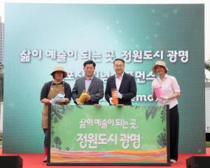 광명시(시장 박승원)가 ‘삶이 예술이 되는 곳, 정원도시 광명’을 비전으로 선포했다.시는 지난 21일 안양천 햇무리광장에서 ‘정원도시 어울림행사’를 열고, 모든 공간이 정원이 되고 예술이 넘쳐흐르는 도시로 만들어가고자 하는 의지를 시민 앞에 선언했다.또한 전문활동가, 시민정원사, 학부모회, 각 동 유관단체 대표 등 다양한 시민 주체 70여 명으로 구성된 정원추진단이 공식 출범했다. 이들은 시민이 주도하는 정원문화 확산과 도시 전역의 정원화 실현을 위한 활동을 이어나갈 예정이다.이날 정원추진단과 함께 낭독한 선언문에는 ▲‘도시 전체를