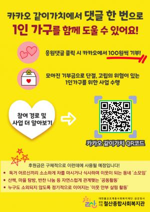 철산종합사회복지관(관장 김영선)은 18일부터 지역 내 1인 가구의 정서적 고립 해소와 이웃 간 돌봄 문화 조성을 위한 ’우리동네 똑똑복지사‘의 사업기금 마련을 위한 ’카카오같이가치‘ 온라인 모금을 시작했다고 밝혔다.’우리동네 똑똑복지사‘는 2024년부터 철산2동 지역사회보장협의체(위원장 이정환), 행정복지센터(동장 김서영)와 협력하여 진행하는 사업으로, 위촉된 지역주민들이 매월 2회 이상 1인 가구 어르신을 직접 찾아 뵙고 안부를 확인하며 관계망을 형성해 나가는 주민참여형 복지사업이다.이번 후원 캠페인은 ’복지 사각지대 해소‘라는
