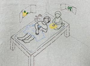 문간방에는 우리 가족이 이사 나갔던 사이, 다른 식구들이 세 들어와 살고 있었다. 그 작은 방에 5명이나 되었다. 홀어머니를 모시고 사는 4남매 가족이었다.할머니는 지병과 노환으로 거동을 못하셨다. 아랫목에 크고 높은 평상을 두고 할머니는 온종일 그 위에 요를 깔고 누워 생활하셨다. 지금 생각해 보면 옛 과학실 책상이 아니었나 싶다. 평상 밑에 큰오빠, 막내오빠가 자고, 그 옆에 작은언니, 가장 윗목에 큰언니가 잤다.언니오빠와 할머니는 모두 머리카락과 눈썹과 눈이 새카맸다. 나는 종종 놀러가 평상 밑에 들어가 노래도 부르고, 옛날이