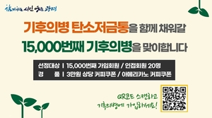 광명시가 1만 5천번째 ‘기후의병’에게 3만원 상당의 커피 상품권을 증정하는 이벤트를 실시한다고 지난 12일 밝혔다.또한 1만 5천번에 근접한 20명의 회원(1만 4천990번~1만 5천10번)에게는 5천원 상당의 '커피 상품권'을 제공한다. 단, 경품을 받으려면 가입 7일 내 ‘나는 기후의병 참여선언’ 항목을 실천하고 인증해야 한다.이번 이벤트는 광명시 탄소중립 시민실천 사업의 새 이름인 ‘기후의병 탄소저금통’ 브랜드를 널리 알리고, 시민들의 일상 속 탄소중립 실천을 독려하기 위해 마련됐다.시는 지난 4월 명칭 공모전을 거쳐 ‘기후