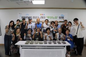 철산종합사회복지관(관장 김영선)은 21일 복지관 옥상텃밭에서 ‘햇살농장’에 참여하는 1인 가구 어르신 15명이 모여 직접 수확한 작물로 음식을 만들어 함께 나누는 활동을 진행했다.‘햇살농장’은 홀로 사는 어르신이 모여 텃밭 작물을 가꾸고 집단 원예 치료 활동을 하며 이야기를 나누는 모임이다. 이를 통해 어르신은 자연물과 접촉하고 또래 이웃과 소통하면서 고독감에서 벗어나 타인과 관계를 형성하게 된다.이날 어르신들은 약 3개월간 텃밭에서 키운 상추, 부추, 오이고추 등을 수확하였으며, 깨끗이 씻어 꼬마 김밥과 겉절이로 만들어 나눠 먹었