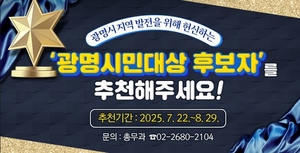 광명시는 오는 8월 29일까지 ‘제37회 광명시민대상’의 주인공을 찾기 위해 후보자를 추천받는다.은 지역사회 각 분야에서 근면·성실한 자세로 봉사하며 시 발전과 명예를 위해 헌신한 시민 또는 단체에게 수여하는 상이다.추천 대상은 다양한 분야에서 적극적인 봉사활동으로 지역사회 발전에 헌신해 온 개인 또는 단체로, 광명시민 누구나 본인을 제외하고 자유롭게 추천할 수 있다.후보자 자격은 추천 공고일인 7월 21일 기준으로 최근 3년 이상 광명시에 계속 거주하거나 관내에 사업장(직장)을 둔 시민 또는 단체면 가능하다.시는 오