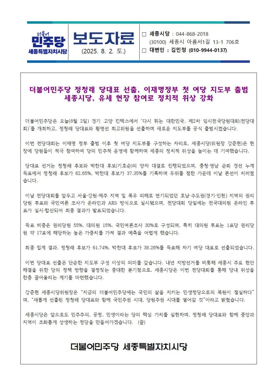 월, 2025/08/04- 00:00 에 admin 에 의해 제출됨 [0] 관련 개인/그룹 민주당 세종시당 정당 더불어민주당 지역 세종 카테고리 보도자료 링크 https://sejong.theminjoo.kr/party/sub/news/view.php?brd=244&post=973&board_id=press Like 0 Dislike 0 3 views 댓글 달기 이름 제목 Comment 저장 Preview