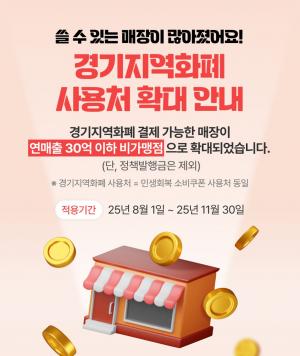 광명시(시장 박승원)는 오는 11월까지 광명사랑화폐 사용처를 연매출 30억 원 이하 업체로 확대한다고 13일 밝혔다.이번 조치는 민생회복 소비쿠폰 사용처와 지역화폐 사용처가 달라서 벌어지는 혼란을 줄이고, 민생경제 회복 정책에 적극적으로 동참하는 취지로 경기도 지역화폐 심의위원회 의결을 거쳐 결정됐다.이에 따라 민생회복 소비쿠폰 사용 기한인 오는 11월 30일까지 연매출 30억 원 이하 업체에서 광명사랑화폐를 사용할 수 있게 됐다.특히 광명시는 민생회복 소비쿠폰을 지역화폐로 받은 비율이 약 54%로 월등히 높아 이번 조치로 시민 편