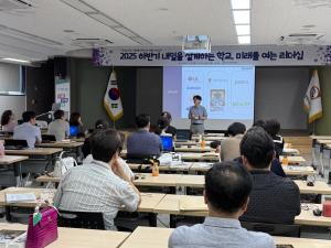 광명교육지원청은 8월 28일과 29일 양일간 「2025 하반기 내일을 설계하는 학교, 미래를 여는 관리자 리더십」 연수를 실시하였다. 이번 연수는 초·중·고 교장·교감 98명을 대상으로 미래교육 환경에 적합한 관리자 리더십을 강화하고 학생 맞춤형 교육을 실현하기 위해 마련되었다.이번 연수는 교육과정 연계 진로교육과 창업가정신 교육 확산, 하이러닝 AI 서·논술형 평가 현장 적용 확대를 목표로 진행되었다.첫 번째 프로그램에서는 ‘에듀테크와 창업가정신, 미래를 설계하는 관리자’를 주제로 에듀리프트 이진우 대표가 특강을 진행하였다. 강의