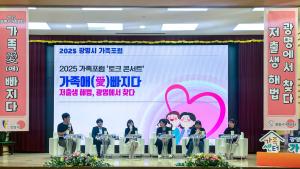 ‘2025년 가족포럼 가족애(愛)빠지다' 토크 콘서트가 광명시가족센터 주관으로 10일 시청 대회의실에서 열고 인구 변화와 저출생 대응 정책 방향을 논의했다.이번 포럼에는 시민·전문가·행정 관계자 등 80여 명이 참석해 전문가 발표와 지정토론, 박승원 광명시장이 함께한 토크 콘서트가 이어졌다.1부에서는 권순범 성남시정 연구원이 광명시 인구변화와 저출생 대응정책 방향 주제로 주제발표를 했으며 ▲광명시의 저출생 방향과 지자체 역할(황미영 광명시 여성가족과 팀장) ▲가족센터의 방향과 역할(윤성은 한국가족센터 협회장) ▲저출생시대 지역의 역
