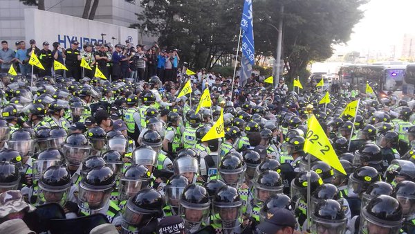 4. 뿐만 아니라 경찰은 양재동 사옥 앞에서 열리는 기자회견에 대해서까지 이를 집회라고 함부로 규정하면서 시작도 하기 전부터 그 진행을 방해하고 참가자들을 격리시키는 등의 불법을 저지르고 있고, 현대자동차 측에 양재동 사옥 앞 집회를 독점적으로 허용하면서 타 단체의 집회신고에 대해서는 모두 금지통보를 하고 있는 상황입니다.