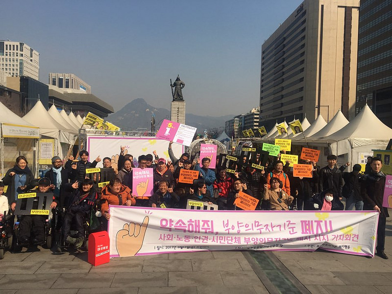 이에 우리는 빈곤을 개인과 가족의 책임으로 떠넘기며 100만 명이 넘는 사각지대를 방치하고 있는 부양의무자기준을 빈곤문제 제1호 과제로 명하고, 사회·노동·인권·시민단체가 함께 부양의무자기준 폐지를 약속하는 기자회견을 ‘2017년 3월17일(금) 오전10시 광화문광장 이순신동상 앞’ 에서 했습니다.