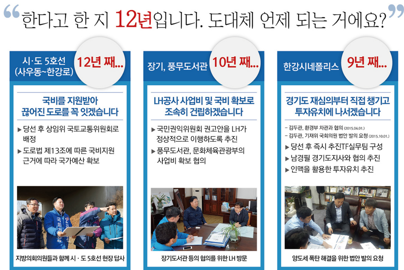 - 시.도 5호선(사우동~한강로) 12년 째 ... 국비를 지원받아 끊어진 도로를 꼭 잇겠습니다.