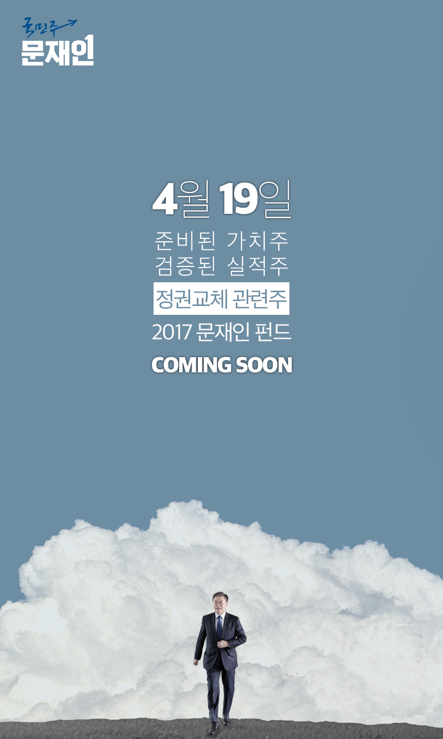 문재인 민주당 대통령후보 선거대책위원회는 대통령선거 비용 마련을 위해 ‘국민주 문재인’이라는 이름으로 4월 19일(수) 오전 9시부터 ‘문재인 펀드’를 출시합니다.