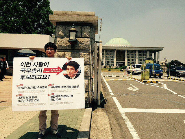 황교안 국무총리 후보자 임명반대 1인 시위