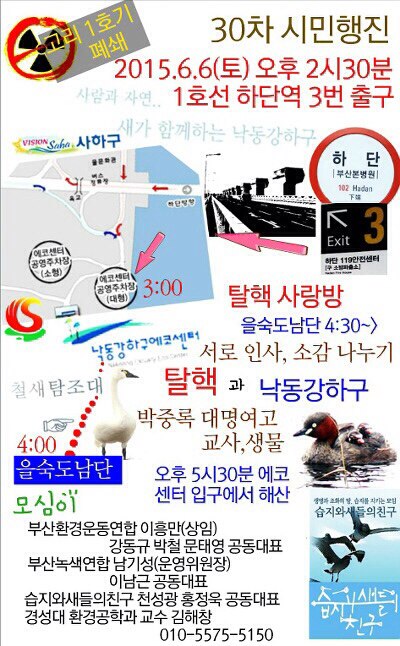 수, 2015/06/03- 20:33 에 익명 (미확인) 에 의해 제출됨 [0] 관련 개인/그룹 부산환경운동연합 지역 부산 중구 2015년 6월 6일(토) 오후 2시 30분부터 고리1호기 폐쇄 탈핵시민행진을 진행합니다. 많은 회원분들의 관심과 참여 부탁드립니다. 링크 http://pusan.kfem.or.kr/bbs/bbs/board.php?bo_table=bo01&%3Bamp%3Bwr_id=995 Tags 탈핵 고리1호기 탈핵시민행진 Like 0 Dislike 0 377 views 댓글 달기 이름 제목 Comment 저장 Preview