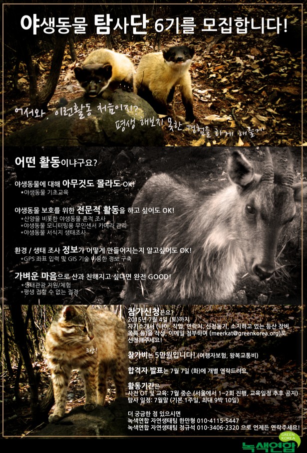 야생동물 모니터링을 함께할 야생동물 탐사단 6기를 모집합니다.
