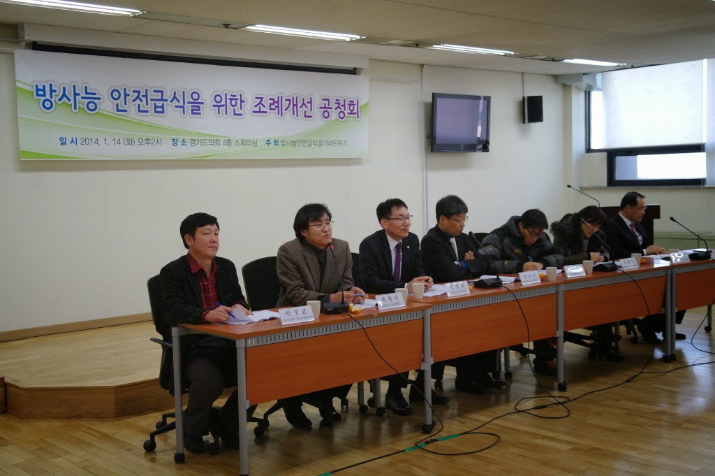 이에 따라 1월 14일(화) 오후 2시 경기도의회 소회의실에서는 기존의 국가기준치 이하로 규정하고 있는 경기도 조례를 개정하는 공청회가 열렸습니다. 고양시에서는 김달수도의원이 발제자로, 최창의교육의원이 토론자로 참석했고, 방사능안전급식네트워크에 참여하기로 한 고양시민사회연대회의에서는 고양YWCA에서 공청회에 참가했습니다.