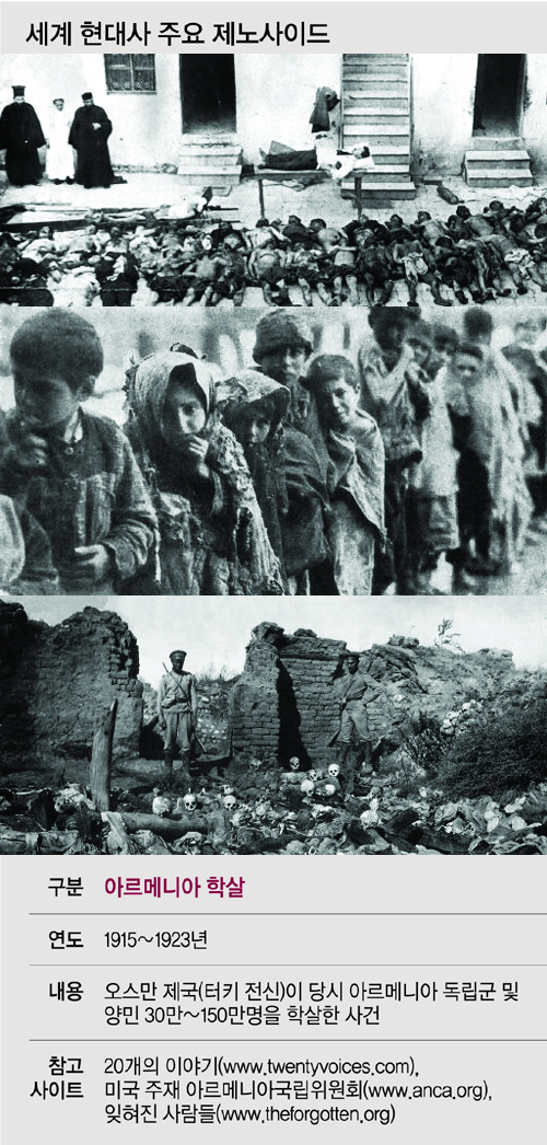 프란치스코 교황은 지난달 12일(현지시간) 아르메니아 학살 100주기 특별미사에서 참혹한 역사를 직시해야 한다고 당부했다. 20세기는 ‘학살의 100년’이었다.