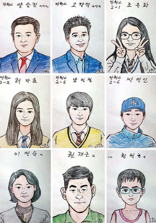 조은화, 허다윤, 남현철, 박영인, 고창석, 양승진, 권혁규, 권재근, 이영숙.