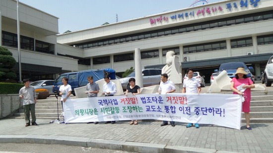 어제 의왕시청 앞에서 의왕시 교정타운 계획 철회 기자회견을 했습니다.