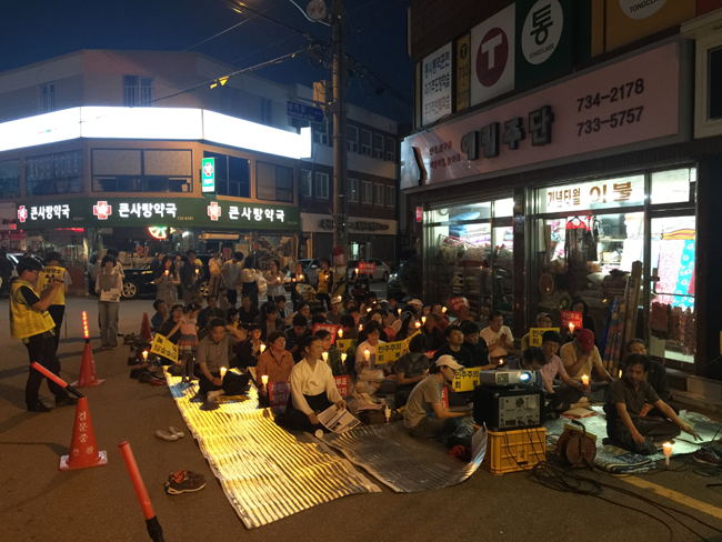 ⓒ보헤미안[/caption] 7월 1일 오후 여덟시, 영덕 핵발전소 건설 저지를 위한 수요 촛불집회가 영덕시내에서 진행됐다. 현재 영덕에서는 매주 수요일 원전 백지화를 요구하는 촛불집회와 함께 주민투표를 추진하기 위한 서명운동을 진행 중이다. 최근 산업통상자원부가 제 7차 전력수급기본계획을 통해 발표한 신규원전 2기를 포함 총 4기를 건설하겠다는 의지를 밝혔다. 정부는 새로운 건설 부지로 삼척•영덕 등을 꼽았고, 삼척에서는 이미 한차례 주민투표를 통해 거부의사를 밝혔다. 이에 영덕에서도 핵발전소 건설 여부를 주민투표로 결정하자는 지역주민들의 목소리가 높아지고 있다. [caption id="attachment_151861" align="alignnone" width="650"]