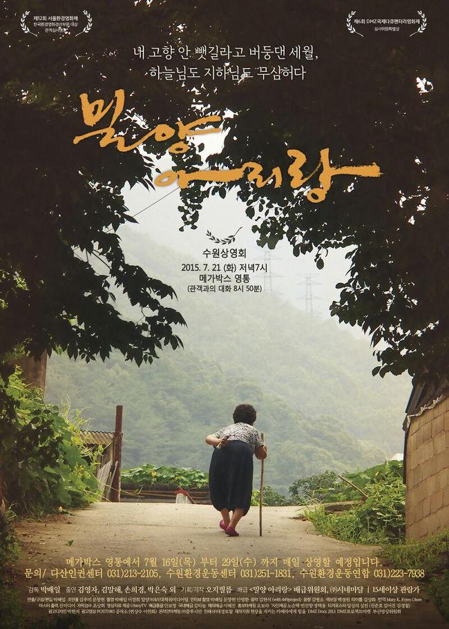 평생을 살아온 고향 땅에 송전탑이 들어오는 것을 막기 위해 온몸으로 싸워온 밀양 할매들의 이야기를 영화로 풀어 낸 '밀양 아리랑'이 수원에서 상영됩니다.
