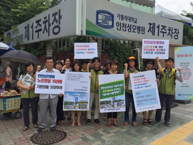 보건의료노조는 지난 7월 2일부터 천주교 인천교구와 인천성모병원 앞에서 1인 시위를 시작했다. 인천교구앞에서는 인천성모병원 사태 해결을 위해 경영권을 인수한 교구가 직접 나설 것을 촉구하는 피켓을 들고 1인 시위를 계속 하고 있다. 지난 7월 28일 부터는 인천성모병원 앞에서 인천성모병원지부 홍명옥 지부장이 직접 집단 괴롭힘 가해자 처벌과 재발방지대책 마련을 촉구하는 피켓을 들고 1인 시위에 들어갔다.