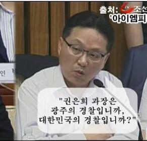 조명철 새누리당 의원은 댓글사건의 수사 책임자였던 권은희 전 수사경찰서 수사과장에게 질문하는 과정에서 “광주의 경찰이냐, 대한민국의 경찰이냐”고 물었다.