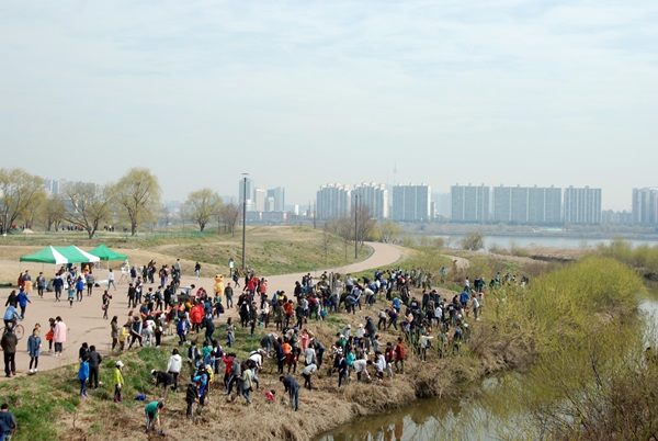 ○ 그동안 여의도 샛강과 광나루 한강시민공원 등에 한강 숲 조성 사업을 진행해 1000여명의 시민과 11개 기업 및 단체가 참여해 1만 그루의 나무를 심어 숲을 조성하였다.