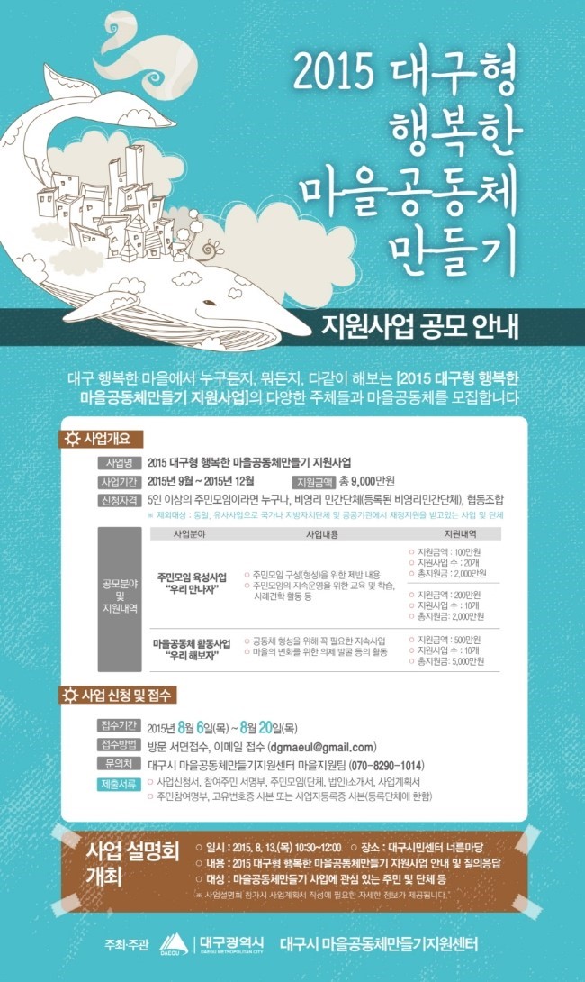 [2015 대구형 행복한 마을공동체만들기 지원사업]의 다양한 주민주체들과 마을공동체를 모집합니다.