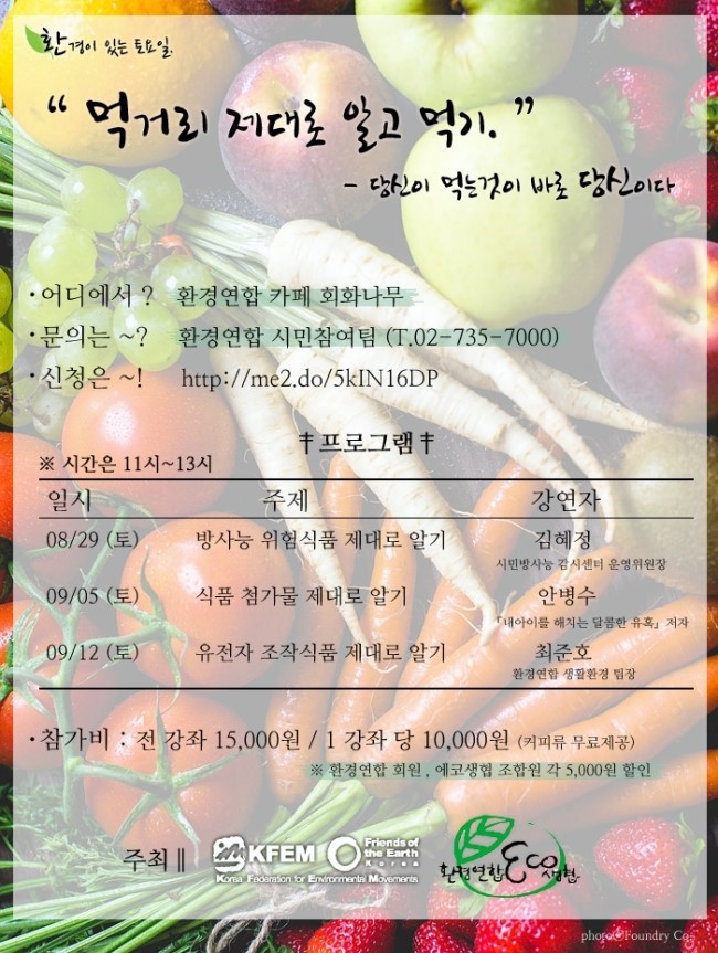 (환경연합 회원/에코생협 조합원: 전강좌 10,000원/ 1강좌당 5,000원)