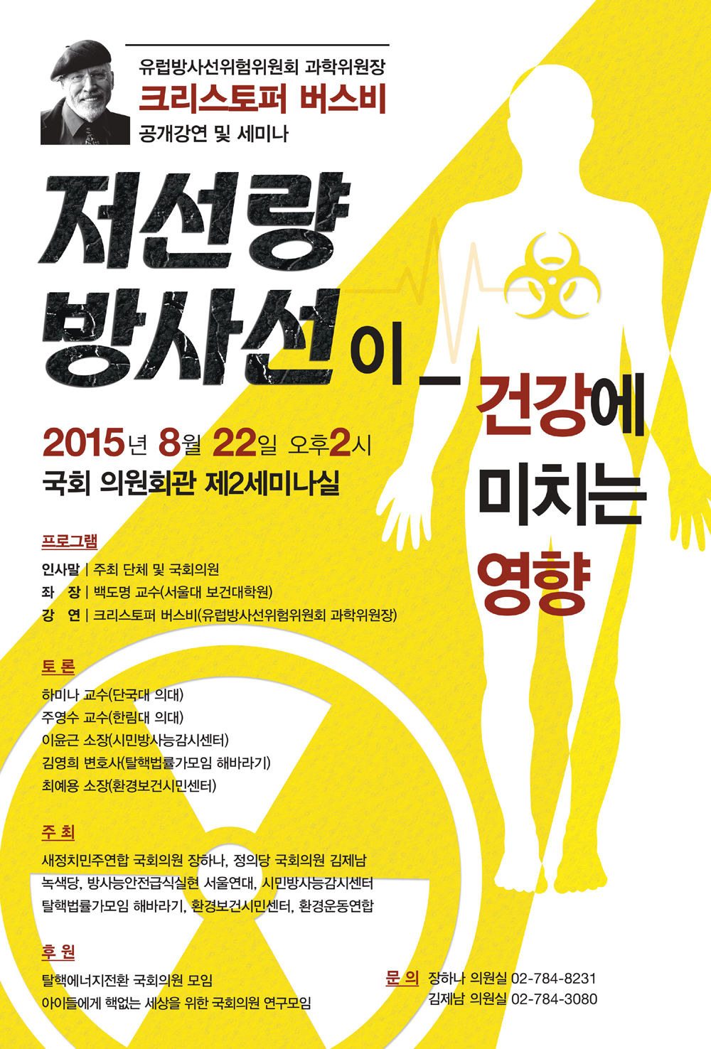 화, 2015/08/18- 17:51 에 익명 (미확인) 에 의해 제출됨 [0] 관련 개인/그룹 환경운동연합 지역 종로구 유럽 방사선위험위원회 과학위원장 크리스토퍼 버스비 공개 강연 및 세미나 저선량 방사선이 건강에 미치는 영향 링크 http://kfem.or.kr/?p=152617 Tags 공지사항 에너지 기후변화 활동뉴스 노후원전 방사능 저선량방사능 크리스토퍼버스비 탈핵 환경운동연합 후쿠시마 Like 0 Dislike 0 1285 views 댓글 달기 이름 제목 Comment 저장 Preview