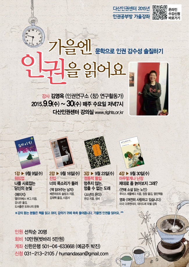 ※ 알려드린 책을 읽고 와야, 강의가 귀에 쏙쏙 들어옵니다. 가을엔 인권을 읽어요. ^^