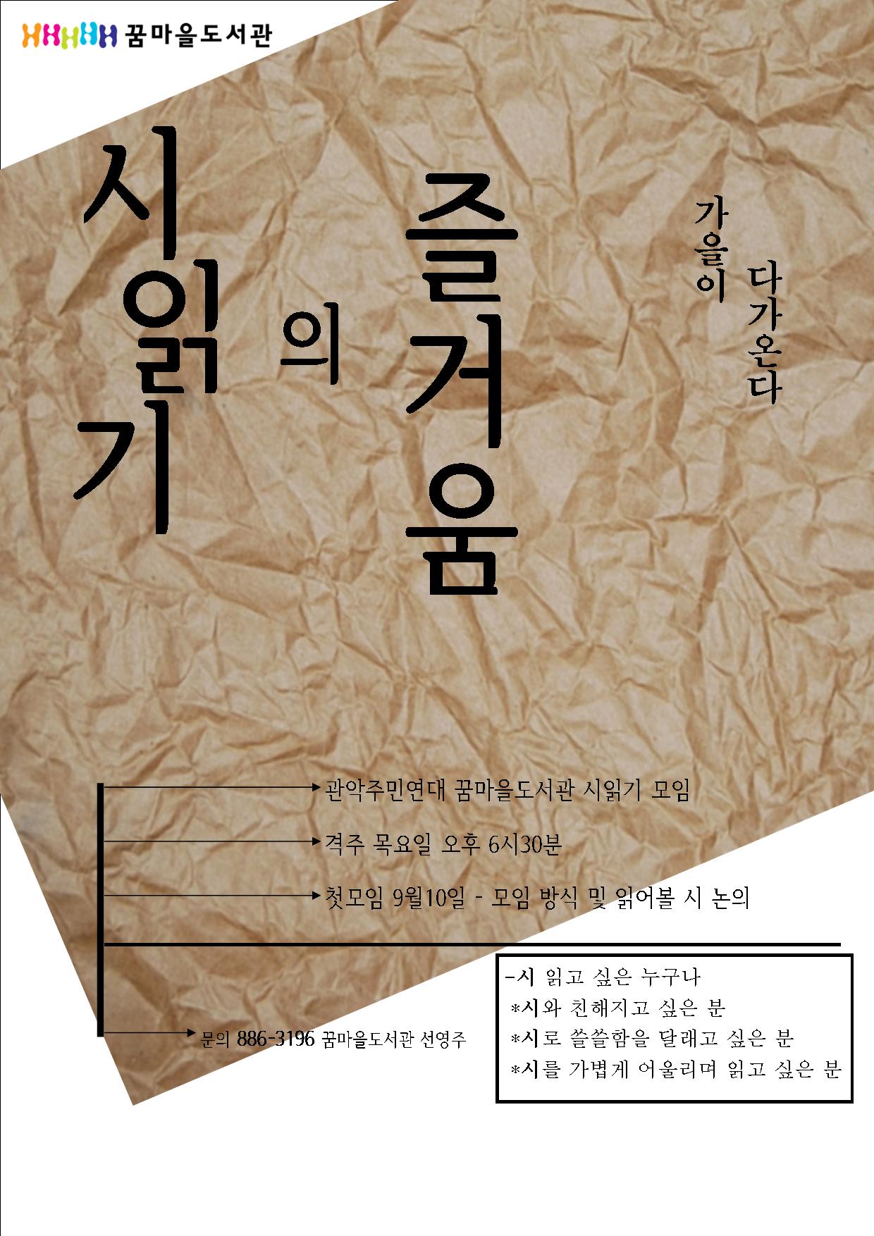 화, 2015/08/25- 09:48 에 익명 (미확인) 에 의해 제출됨 [0] 관련 개인/그룹 관악주민연대 지역 관악구 첫모임은 어떤 방식으로 모임을 진행할지, 어떤 시를, 시인을 읽고 싶은지, 간단한 자기소개를 하려고 합니다. 많은 참여 부탁드립니다~ 링크 http://www.pska21.or.kr/xe/71399 Tags 꿈마을도서관 시읽기모임 Like 0 Dislike 0 725 views 댓글 달기 이름 제목 Comment 저장 Preview