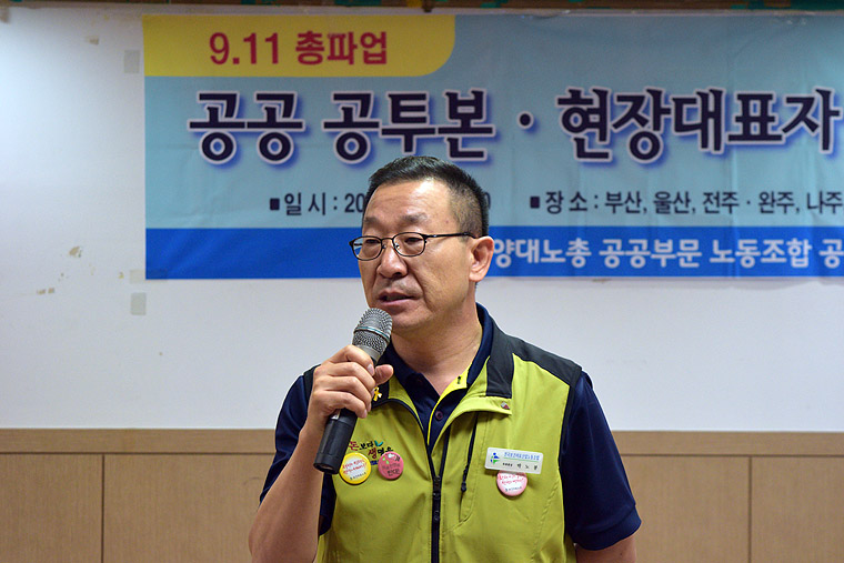 박 부위원장은 “이대로 앉아서 당하고만 있을 수 없고 비켜서거나 물러설수 없다. 우리가 먼저 9.11 파업으로 강력한 저항을 보여주어야 저들도 주춤하고 방향을 전환하는 것이 가능해진다. 지금 우리들이 많이 어려운 상황이긴 하지만 우리가 가지고 있는 모든 역량을 모아서 투쟁해야 한다."라고 호소했다.