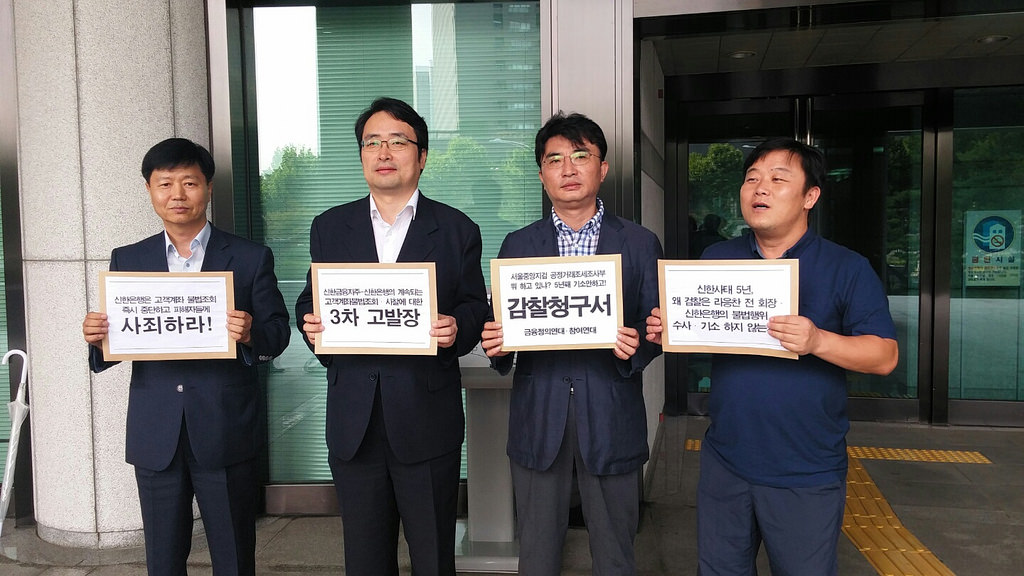 신한사태 당시 신한은행 내부의 공작과 불법 행위는 지금까지 언론 보도와 정치권의 문제 제기를 통해서도 여러 차례 화제가 된 바 있습니다. 당시 라응찬 전 회장과 이백순 전 신한은행장 등이 주도해 신상훈 당시 신한금융지주 사장과 그 측근들을 몰아내기 위해 기획 고소를 강행하면서, 신한금융지주와 신한은행 쪽은 억지 증거 수집을 위해 무차별적으로 개인정보를 조회하고 계좌추적까지 자행한 것도 모두 사실로 확인됐습니다(금감원 2013년 7월 조사 결과 등) 더욱 심각한 것은 최근까지도 신한은행에서 고객들에 대한 계좌를 불법적으로 조회하고 있다는 것입니다. 참여연대 경제금융센터로 2015년에만 최소한 4인의 피해자가 이 같은 사실을 공익 제보해주었습니다. 금융기관의 해서는 안 되는 이 같은 범죄 행위가 신한사태 전후해서부터 지금까지 자행되고 있음에도 금융감독 기관은 조사 결과를 발표하지 않고 있고(금감원이 2013년 7월에 신한금융지주와 신한은행의 불법행위 조사 결과를 발표하고 솜방망이 징계를 한 후인 2013년 가을에도 국회에서 야당 의원들을 중심으로 신한은행의 대규모 고객계좌 불법 조회행위에 대한 공개적인 폭로가 있었고, 2014년 10월에는 ‘신한은행 비대위’ 문건까지 공개됐고, 새로운 피해자들의 경우 최근까지도 금감원에 지속적으로 진정서를 제출했음에도 불구하고 금감원은 지금까지 조사 결과를 발표하지 않고 있음), 검찰은 사실상 봐주기 수사와 비호 행위를 계속하고 있습니다. 금융감독 기관과 사법 당국의 이와 같은 대응은 이미 발생한 수없이 많은 국민들의 피해뿐만 아니라 수천만에 이르는 신한금융 거래 고객의 잠재적 피해를 방치하는 것이나 다름없습니다.