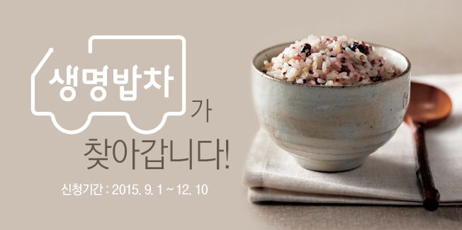 어려운 이웃을 위한 곳에, 더 나은 사회를 위한 곳에, 꿈꾸는 생명세상을 위한 곳에 한살림 생명밥차가 생명이 살아 있는 소중하고 건강한 밥 한 끼를 대접해드리겠습니다. 좋은 일을 하는 아름다운 사람들과 나눔의 의미를 더욱 든든하게 채워드리겠습니다. 사람과 사람, 사람과 자연을 사이 좋게 더욱 가까이 이어주는 따뜻한 밥 한 끼의 행복. 한살림이 함께 나눕니다.